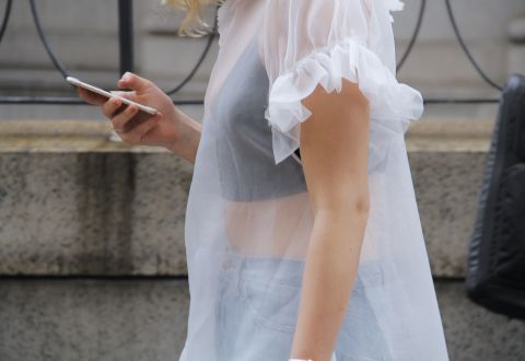 On Sunday, the Fashion Week in London, of a beautiful woman a nearly identical suit was me - same - a small lace skirt, gray cashmere turtleneck and jacket. We smiled at each other and before you know that photographers had come running.